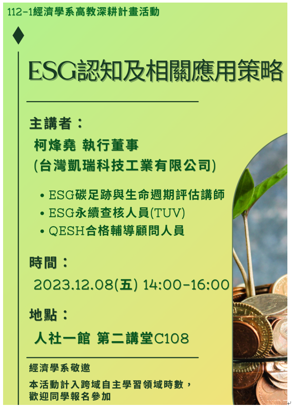 【經濟學系專題演講】112.12.08(五)柯烽堯執行董事(台灣凱瑞科技公司)